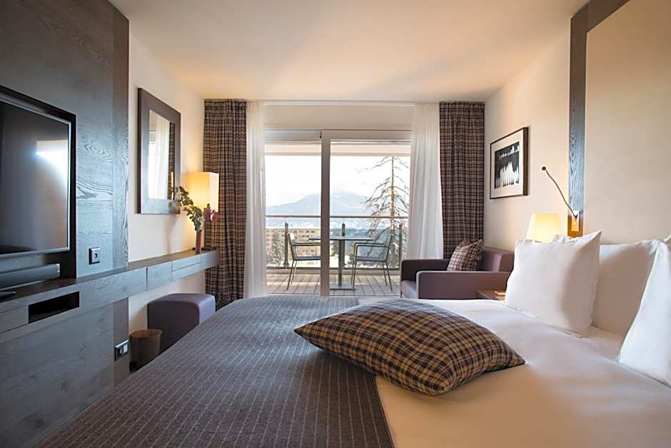 These spacious rooms are 30 to 131 ft² in size and come with a big double bed or twin beds and a big bathroom. The toilet is separate from the bathroom and the rooms have a terrace with panoramic mountain views. The closet in the anteroom has plenty of storage space, a Nespresso coffee machine, a safe and a mini-bar. Additional amenities include a 42" TV and free WiFi A baby bed or an extra bed for a child is available in these rooms. Interconnected rooms are available as well. Bath or shower upon availability
